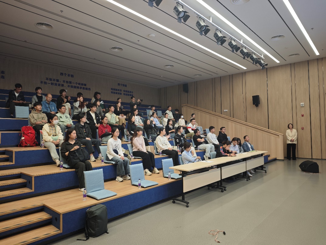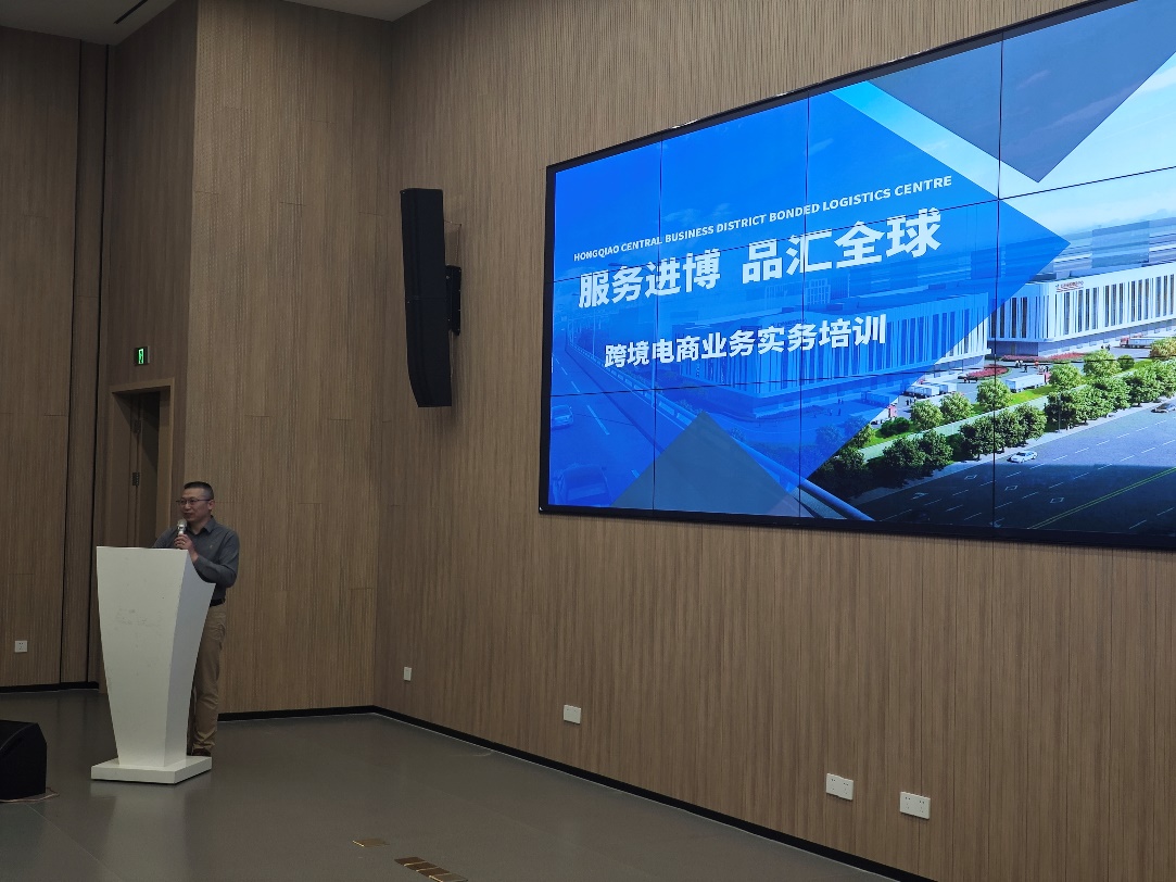 随后,在汇报厅里,虹桥品汇人力资源部经理林毓青向师生们简要介绍了虹桥品汇的情况,对师生们的到来表示了欢迎。接着,虹桥品汇供应链部负责人李光林以“跨境电商业务实务”为题,为师生带来了一场信息量大、实操性强的精彩分享。他从清关模式比较、商品准入“双清单”监管,到企业接入流程与交易真实性监管,结合政策条文与实际案例,层层解读,剖析了其中的物流流程和关键要点,展现了跨境电商领域的机遇与挑战,其深入浅出的讲解对跨境电商及其物流管理有了更清晰的认知。