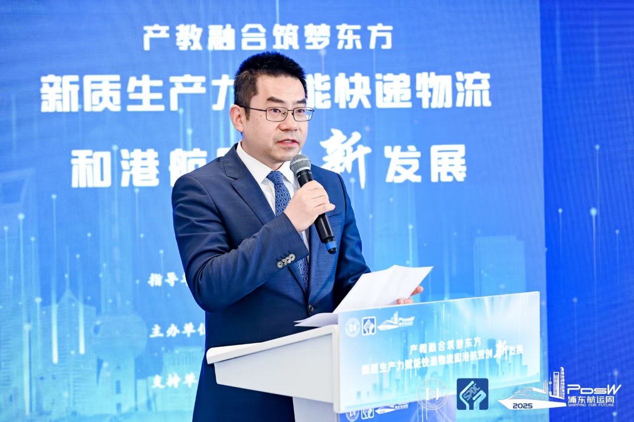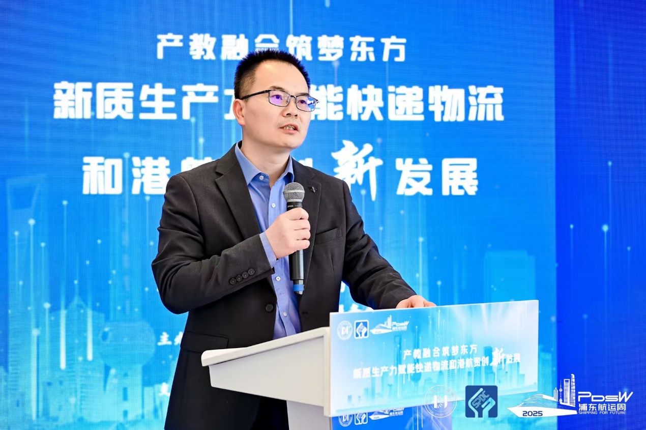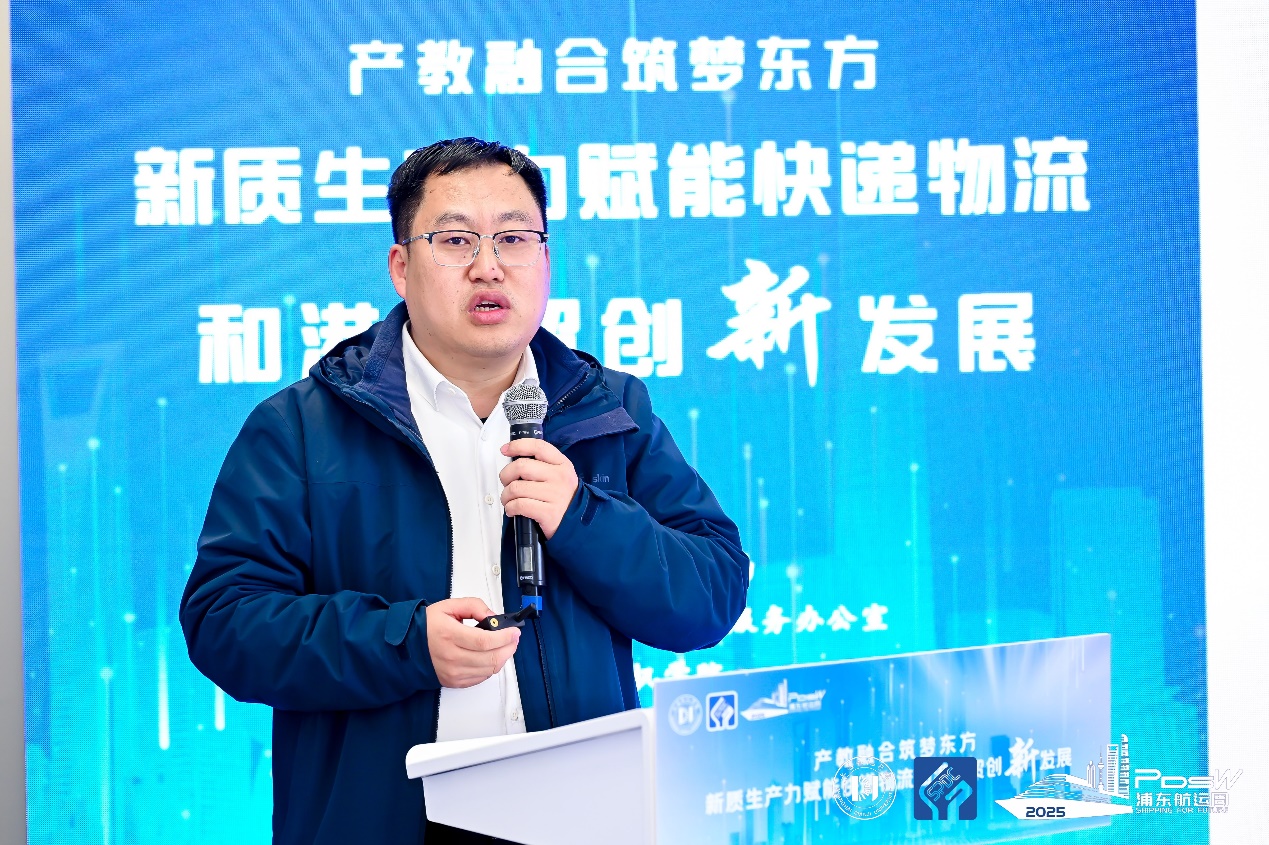 首先,上海市邮政管理局副局长、二级巡视员余洪伟先生、浦东新区航运服务办公室副主任王骞先生、上海电机学院副院长杨俊杰先生和浦东新区教育局高中(职业)与终身教育处处长马淑颖女士,围绕快递物流与港航贸产业高质量发展政策、产教融合支持体系等内容作致辞分享,明晰了行业发展方向与人才培养导向。特别是杨俊杰副院长在致辞中,指明学校立足上海国际航运中心建设大局,扎根临港新片区国家产教融合试点,深化产教融合、推进校企协同可为产业高质量发展注入不竭动能,也期待在共建协同育人新生态、共筑创新攻关新平台和共搭人才流动新通道这三个领域与相关企业共同开展深入合作。