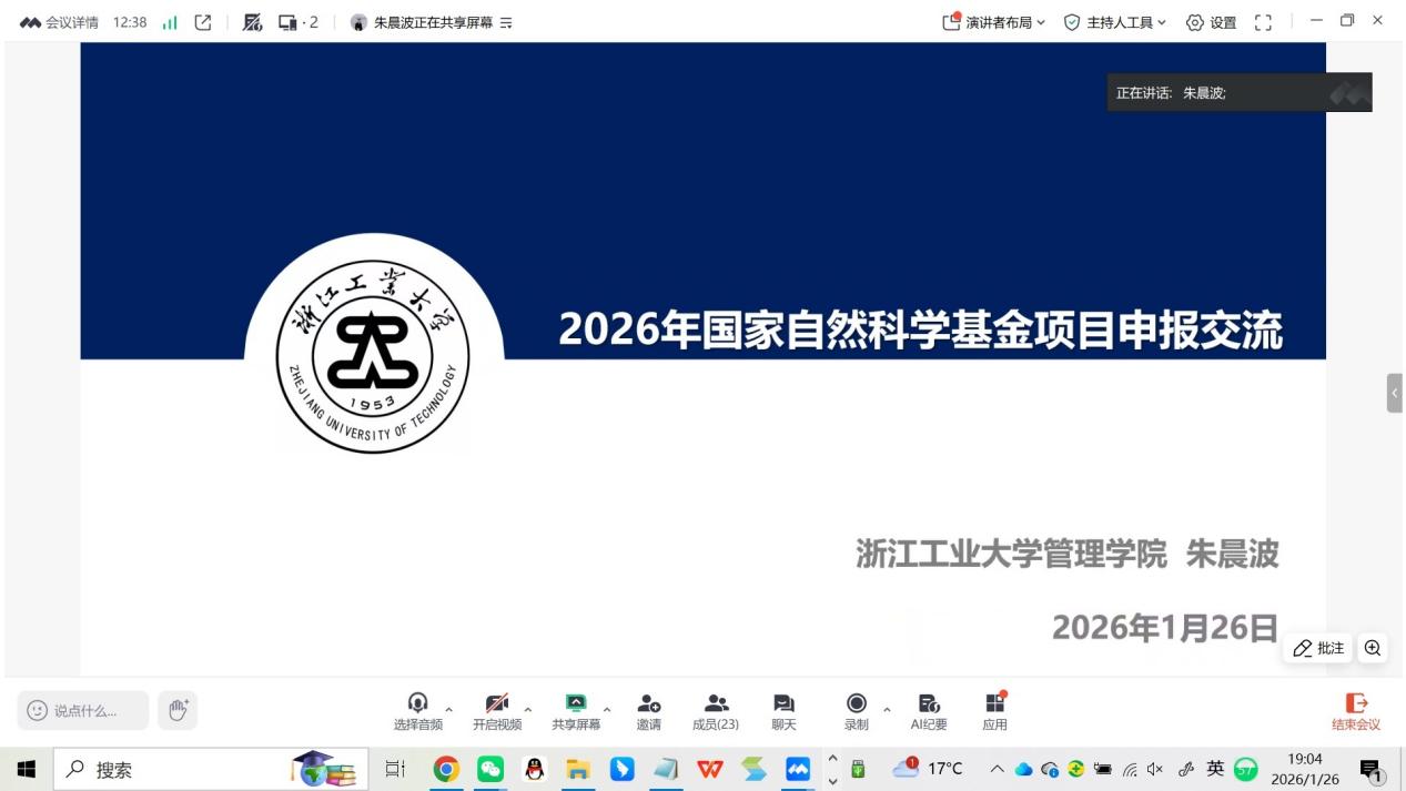 为全面提升我院师生科研素养与项目申报能力,我院于近日成功在线举办国家自然科学基金项目申报专题指导讲座。本次讲座特邀浙江工业大学管理学院信息管理与信息系统系主任、博士生导师朱晨波副教授担任主讲,吸引了学院三十余位师生共同参与,形成了师生共学、教学相长的良好学术氛围。