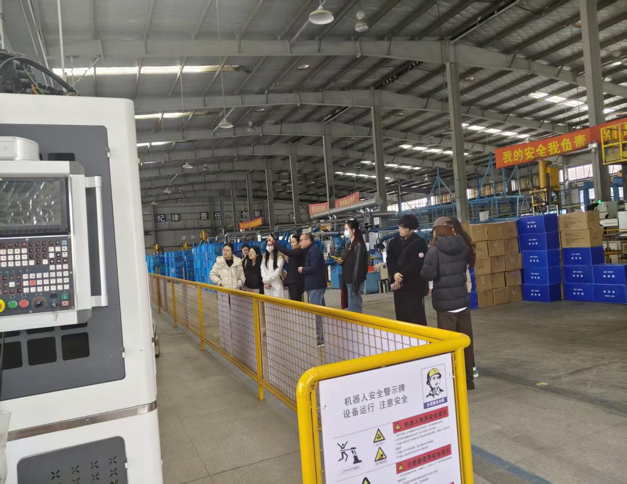 参访过程中,师生们先后了解了企业的精益生产管理体系、IWAY 6.0标准、水焊车间精益生产架构以及“黑灯车间”等典型场景。通过园区展示内容,同学们直观认识到,数字化转型并非简单“上系统”,而是与标准化管理、流程再造、自动化设备、绿色生产深度融合的系统工程。尤其是“黑灯车间”所呈现出的高度自动化、连续化生产能力,以及粉尘净化处理等绿色制造环节,让大家真切体会到现代制造业在效率提升与可持续发展之间的协同推进。