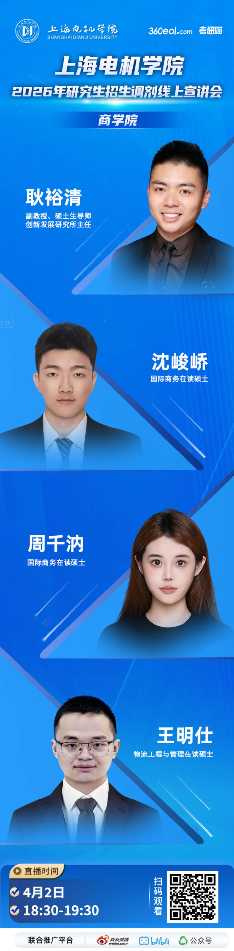 上海电机学院商学院2026年研究生招生调剂线上宣讲会
