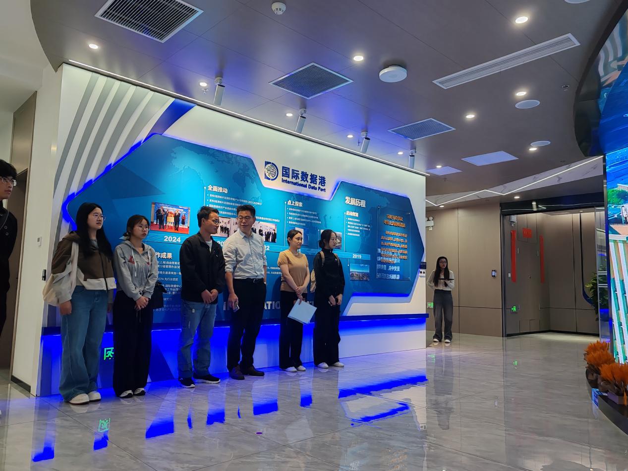 2025年10月20日下午,由党委研究生工作部主办、商学院承办的“研究生实践育人系列活动”顺利举行。上海电机学院商学院25级数字经济专业硕士研究生在邵长鹏老师和吴祯姝老师的带领下,一同前往国际数据港--跨境数科,开展了一场以“数据跨境流动”为主题的深度实践教学活动,近距离感受数字贸易企业的创新活力与发展脉搏。